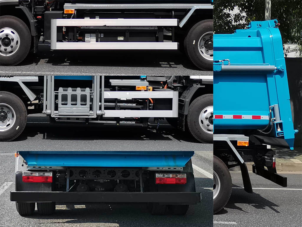 1.该车为垃圾桶收集转运专用车辆,主要装置由垃圾箱体,提桶机构等组成;选装垃圾箱外形结构;选装前部"GLE"及银色"远程"字标.选装上车踏板外形结构;2.侧下部防护材质为铝合金,螺栓连接;后下部防护材质Q235,连接方式为螺栓连接,截面尺寸与离地高度分别为120mm*60mm和420mm;3.该车可选装ETC车载装置;4.储能装置单体种类/单体及总成生产企业:磷酸铁锂蓄电池/宁德时代新能源科技股份有限公司;驱动电机额定功率/峰值功率:60kW/120Kw;5.ABS型号/生产企业:CM4XL-4S/4M/广州瑞立科密汽车电子股份有限公司,VIE ABS-II/浙江万安科技股份有限公司。 |