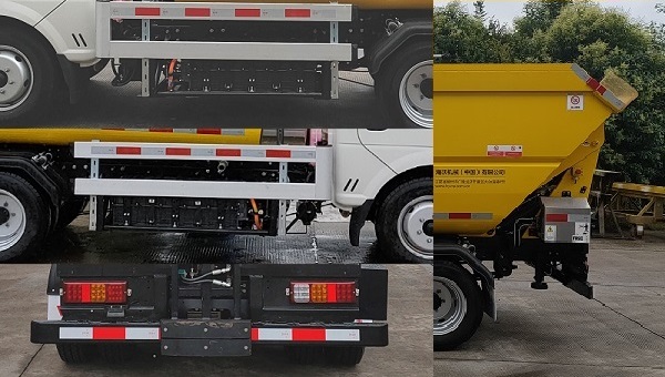 1.ABS系统型号/生产企业:CM4YL/广州瑞立科密汽车电子股份有限公司;2.侧面防护装置的横杆材料为铝合金,螺栓连接,离地高度为505mm;后下部防护装置的横梁材料为Q235A,焊接连接,断面尺寸为100mm?0mm,离地高度为400mm;3.电池种类/生产企业:磷酸铁锂蓄电池/深圳市比亚迪锂电池有限公司(单体),汕尾比亚迪汽车有限公司(总成);4.电机类型/电机型号/生产企业:永磁同步电机/TZ180XSE/长沙市比亚迪汽车有限公司,电机额定功率/峰值功率:50kw/80kw;5.选装及描述:车辆尾部可选装车与车对接装置,选装按钮盒、快插机构装置,选装ETC车载装置,选装双桶提料机构,选装可视窗孔,如上选装装置引起的外廓尺寸无变化,整备质量变化小于3%;6.车辆上装底架与底盘纵梁两侧可选装称重传感器,外廓尺寸无变化;7.该车通过箱体、后提料机构、液压系统来实现垃圾的运转.8.整备质量为3000kg时,含备胎、灭火器、随车工具、液压油等;整备质量为3145kg时,选配双桶提料机构,含备胎、灭火器、随车工具、液压油等; |