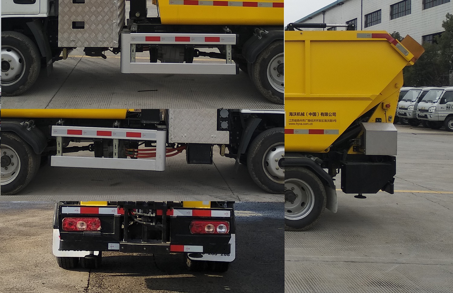 | 1.ABS 型号为:YF8,生产企业为:武汉元丰汽车电控系统有限公司;2.侧面防护装置的横杆材料为铝合金,螺栓连接,离地高度270mm;3.后部专用作业装置代替后下防护装置,离地高度为380mm;4.车辆尾部可选装车与车对接装置,外形尺寸无变化,整备质量变化小于3%;5.车辆后部可选装双桶提料机构,外形尺寸无变化,整备质量变化小于3%;6.电池种类/型号/生产企业:磷酸铁锂电池/L173TB1/宁德时代新能源科技股份有限公司;7.电机种类/电机型号/生产企业:永磁同步电机/TZ249XSC7BY001/苏州众联能创新能源科技有限公司,电机额定/峰值功率:40kw/75kw;8.随底盘选装驾驶室外观;9.该车通过提料机构、液压系统及电控装置等来实现生活垃圾的转运.10.整备质量为2700kg时,含备胎、灭火器、随车工具、燃油等;整备质量为2780kg时,选配双桶提料机构,含备胎、灭火器、随车工具、液压油等;11.选装轮辋的外观. |