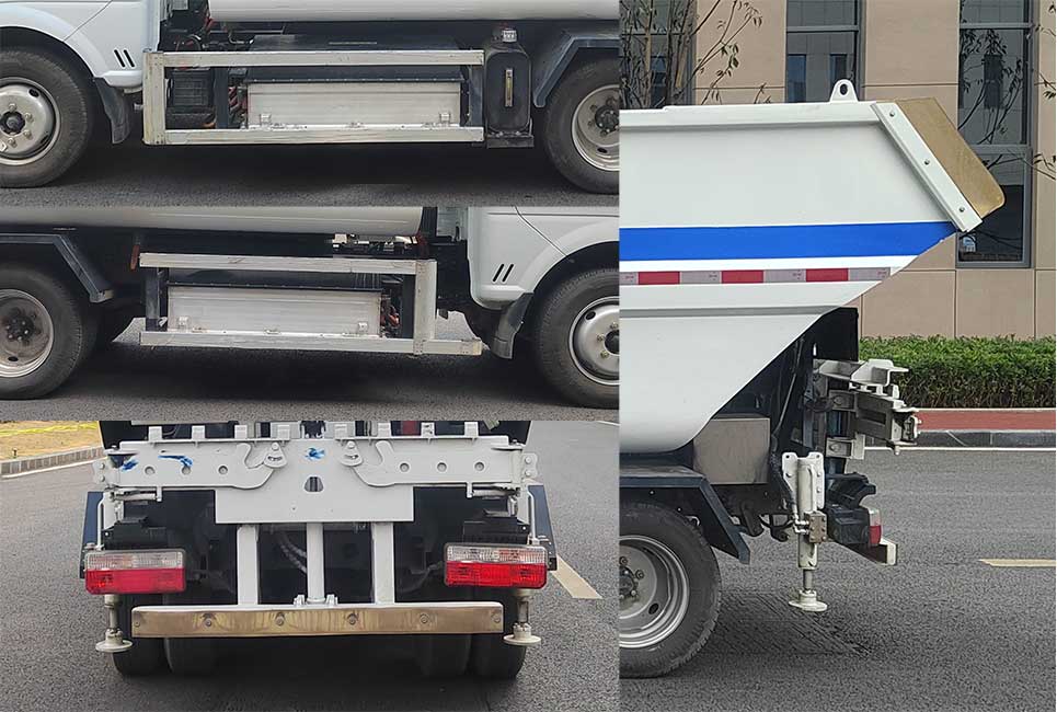 1.该车装备垃圾箱体,提桶机构,举升机构等专用装置,用于实现垃圾的收集、转运功能;2.储能装置种类/生产企业:磷酸铁锂蓄电池/湖北亿纬动力有限公司;3.电机的额定/峰值功率:55kW/110kW;4.侧面防护装置材料为铝合金,连接方式为螺栓连接,后下部防护装置由专用装置替代,离地高度:410mm;5.ABS型号/生产企业:RL-108/瑞立集团瑞安汽车零部件有限公司;6.可选装ETC车载装置;选装不同的后提桶机构,前仓盖标识;7.该车配备千斤顶,三角警示牌,反光背心,随车工具包,无备胎,冷却液,液压油加注正常对应整备质量3180kg;8.货厢重量:680kg;货厢材质:Q345;货厢厚度:侧板3m,底板4mm,上板2mm,前板3mm,后斜板3mm. |
