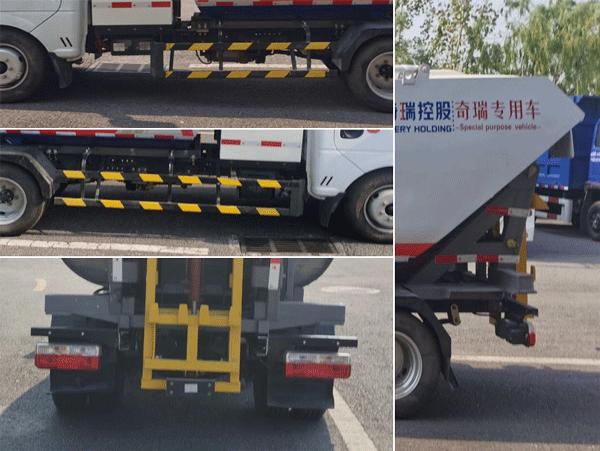 ABS型号:48610X6XX0;ABS生产企业:西安卡迈电子科技有限公司;储能装置种类:磷酸铁锂蓄电池;储能装置生产企业:宁德时代新能源科技股份有限公司;选装描述:随底盘可不装昼间行驶灯,选装车身侧面“奇瑞控股”和“奇瑞专用车”字样、车身“人”字标识,选装顶部推杆、顶部盖板和上料机构;侧后防护情况:侧面防护装置材质为Q235B,连接方式为螺栓连接,车身专用装置作后防护用,离地高度为400mm;自卸方式为后卸式;专用功能及装置:主要用于城市垃圾收集处理,自装卸装置/ZZZ-BEVEV4-601000/奇瑞商用车(安徽)有限公司;;其他说明:该车型可选装ETC车载装置;整备质量不包括备胎、灭火器和随车工具. |