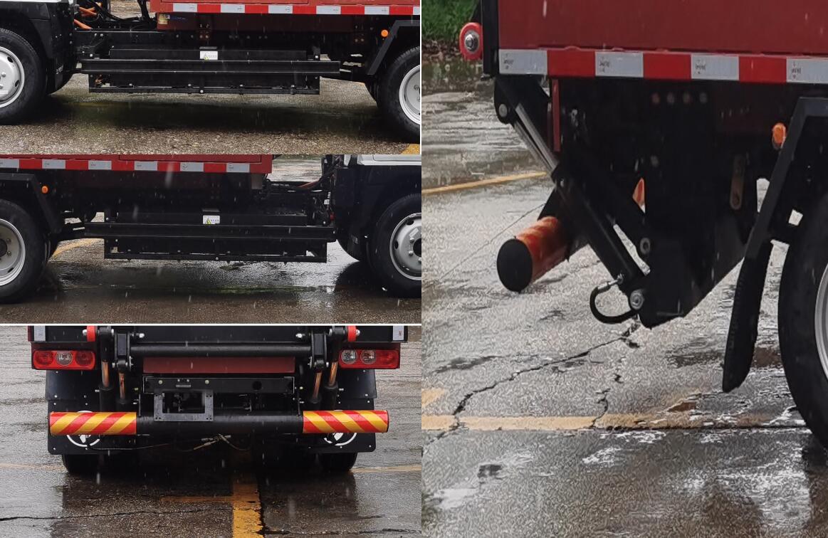 | 1.该车专用功能是用于垃圾桶的装卸及运输,专用装置为液压尾板,用于升降垃圾桶;2:厢体顶盖可升降;3.尾板收起状态的水平长度为160mm,液压尾板质量350kg;4.侧/后防护材料为235A,连接方式为螺栓联接,后防护栏断面尺寸为直径114mm(圆管),离地高度为395mm,5.ABS型号为:YF8,生产企业为:武汉元丰汽车电控系统有限公司;6.储能装置种类:磷酸铁锂电池,型号:L173TB3,生产企业:宁德时代新能源科技股份有限公司;7.驱动电机类型为永磁同步电机,型号为TZ290XS025,额定功率为50kw,峰值功率为100kw,生产企业:中车时代电动汽车股份有限公司;8.选装不同风格厢体,该车型可选装直接供电方式的ETC车载装置.整备质量不包含备胎,灭火器及随车工具等,货厢质量:750kg,货厢底板材料为Q355B,厚度3.0mm,侧板及前板材料为Q355B,厚度2.0mm,顶板材料为Q355B,厚度1.5mm,货箱质量:490kg,货厢底板、顶板材料为高强度钢,底板厚度1.8mm,顶板材料厚度0.7mm,侧板及前板材料为Q355B,厚度2.0mm,选装外观 |