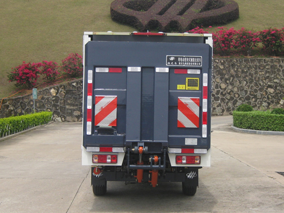 1.选装部件:轮辋样式,可不选装前雾灯;2.尾板质量为185kg;尾板收起状态水平长度为160mm;3.车厢顶部可整体向上升起,不可左右开启,可选装另一种上装(不同类别反光标识);4.电池种类/生产企业:磷酸铁锂蓄电池/宁德时代新能源科技股份有限公司;5.电机种类/电机型号/电机控制器型号/生产企业:永磁同步电机/TZ180XSIN101/KTZ33X26S330/苏州汇川联合动力系统有限公司;电机额定/峰值功率:30kW/60kW.6.ABS控制系统型号/生产企业:YF8/武汉元丰汽车电控系统有限公司;7.该车专用功能是用于垃圾桶的装卸及运输,专用装置为液压尾板,用于升降垃圾桶;8.可选装车载ETC装置;9.车辆整备质量配件配备:灭火器,随车工具;货箱质量:470kg,顶板,前栏板,侧栏板材质:Q235B,厚度:1.2 mm;底板材质Q235A,厚度3mm. |