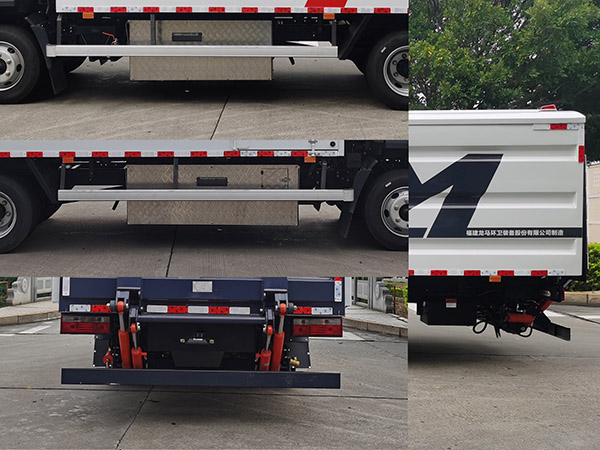 仅选装底盘轴距3850mm;侧防护的材料材质:铝合金;连接方式:螺栓连接;后防护材料材质:Q345B;连接方式:螺栓连接;后防护截面尺寸(宽赘?:30?20mm;离地高320mm;专用功能:用于桶装垃圾收集转运;专用装置:后尾板升降机构;车厢顶部可向上升起,不可左右开启;尾板质量为400kg;尾板收起水平状态为235mm;电池种类/生产企业:磷酸铁锂电池/宁德时代新能源科技股份有限公司;ABS系统控制器型号/生产企业:CM4XL-4S/4M/广州瑞立科密汽车电子股份有限公司;可选装ETC车载装置;随底盘选装轮眉; |