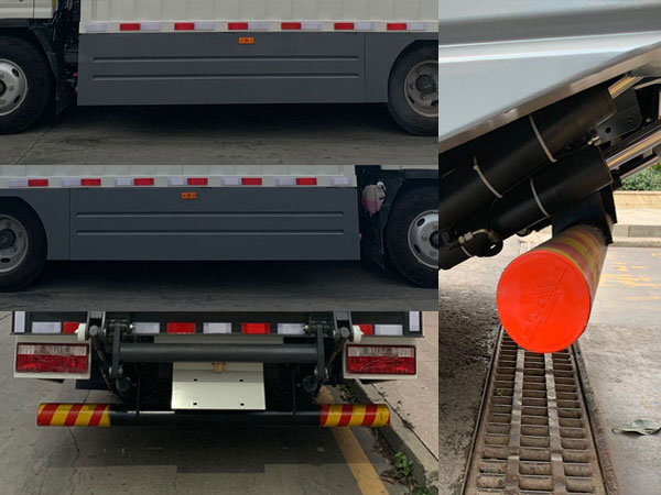 1、储能装置种类为磷酸铁锂蓄电池,生产企业为安徽欧鹏巴赫汽车零部件科技有限公司;2、该车专用功能是用于垃圾桶的装卸及运输,专用装置为液压尾板,用于升降垃圾桶;配备液压升降顶盖;3、尾板收起状态的水平长度为230mm,尾板质量为350kg;4、侧防护装置为裙边结构,后下部防护装置所用材料材质为Q235B,后下部防护装置连接方式为螺栓连接,后下部防护装置的断面尺寸为Φ110mm,离地高度350mm;5、随底盘,ABS控制器型号/厂家:VIEABS-Ⅱ/浙江万安科技股份有限公司;6、长度/前悬/轴距/后悬(mm)对应关系如下:6630=1110+3360+2160,7390=1110+3815+2465;7、选装布置结构;8、该车型可选装ETC车载装置. |