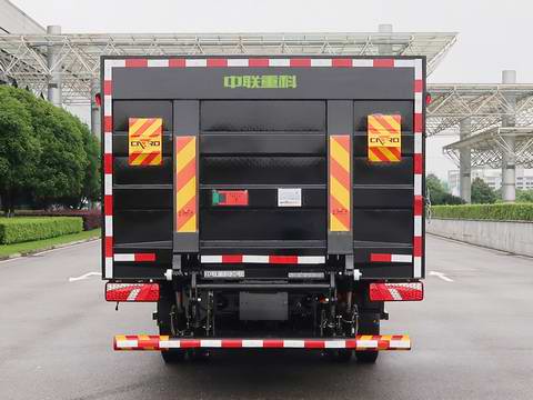| 该车专用功能是用于垃圾桶的装卸及运输,专用装置为液压尾板,用于升降垃圾桶;厢体顶盖可升降;尾板质量为350kg;尾板收起状态的水平长度280mm.该车选用底盘3850mm轴距;侧面防护装置材料为铝合金,连接方式为螺栓连接,后防护装置材料为Q235B,连接方式为螺栓连接.后部防护装置的断面尺寸为φ110?mm,离地高度为317mm;该车技术阶段为"发展期",可在全国销售;动力蓄电池种类:磷酸铁锂蓄电池,生产企业:深圳市比亚迪锂电池有限公司.驱动电机类型:永磁同步电机,电机型号/额定功率/峰值功率/生产企业:TZ365XSC07/95kW/160kW/精进电动科技股份有限公司.随底盘装ABS,ABS系统生产企业:克诺尔商用车系统企业管理(上海)有限公司,广州瑞立科密汽车电子股份有限公司,ABS系统型号:ABS8,CM4XL-4S/4M.可选装箱体侧门,后部外观. |