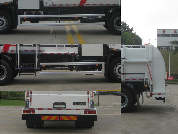 一、该车共6组配置:配置A(标准配置)、配置B(仅单独选装无清洗系统或无污水箱)、配置C(同时选装无清洗系统和无污水箱)、配置D(选装螺旋卸料装置)、配置E(选装螺旋卸料及单独选装无清洗系统或无污水箱)、配置F(同时选装螺旋卸料、无清洗系统和无污水箱),各配置整备质量(kg)/额定载质量(kg)对应关系如下:配置A:9950/7855;配置B:9800/8005;配置C:9650/8155;配置D:10250/7555;配置E:10100/7705;配置F:9950/7855。以上6种配置均可选装:1、称重系统,2、后视影像,3、满箱报警装置,4、垃圾桶自动清洗消毒装置,另,当配装污水箱时,可选装污水箱加热装置,以上5种选装配置引起的质量及整车尺寸变化可以忽略不计。侧防护材料材质:铝合金,连接方式:螺栓连接,后防护装置材料材质:Q235B,后防护装置的断面尺寸(宽赘?mm:75?00,离地高度460mm;二、随底盘选装限速装置,限速:89km/h。三、储能装置种类/生产企业: 磷酸铁锂电池/宁德时代新能源科技股份有限公司,成箱后的储能装置型号:L173C01;驱动电机类型/型号/生产企业/额定功率/峰值功率:永磁同步电机/TZ370XS-LKM1103/苏州绿控传动科技有限公司/80kW/160kW;驱动电机控制器型号/生产企业:KTZ54X59S-GVD55050/深圳市英威腾电动汽车驱动技术有限公司;ABS型号/生产企业:J ABS/焦作博瑞克控制技术有限公司;四、该车主要通过液压控制系统实现车辆提桶专用机构的装卸作业,从而实现餐厨垃圾的收集和转运作业功能。 |