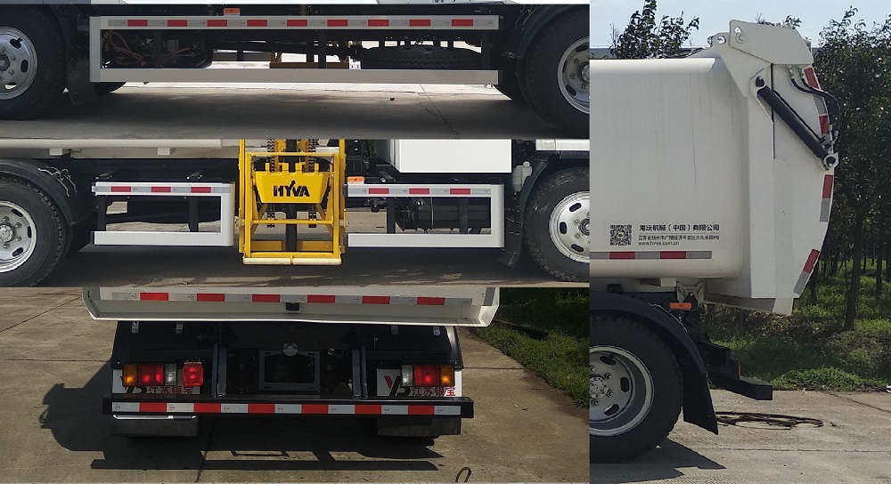 1.ABS及控制器型号为:APG3550500H1,生产厂家为:浙江亚太机电股份有限公司;2.侧面防护装置的横杆材料为铝合金,螺栓连接,离地高度360mm;3.后下防护装置的横梁材料为Q235A,螺栓连接,断面尺寸为100?00mm,离地高度为450mm;4.该车可选装清洗装置,当选装清洗装置时,整备质量变化小于3%,外形尺寸无变化; 5.电池种类/型号/生产企业:磷酸铁锂锂离子动力蓄电池/L202D02/宁德时代新能源科技股份有限公司;6.驱动电机种类/驱动电机型号/生产企业:永磁同步电机/TZ370XS-LKM0851/苏州绿控传动科技股份有限公司,驱动电机额定/峰值功率:75kw/120kw;7.可选装车辆尾部外部标识牌的安装位置;8.该车型可选装ETC车载装置;9.该车是通过垃圾箱、提桶机构、液压系统及电气控制系统等装置来实现餐厨垃圾的收集和卸料的专用垃圾车. |