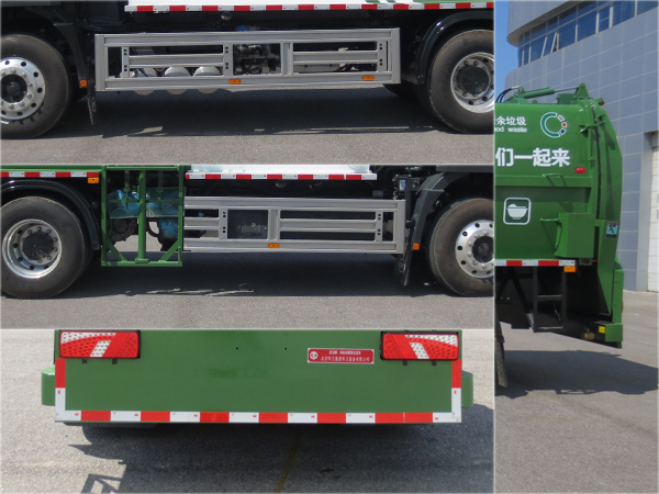 ABS型号:ABS-E;ABS生产企业:威伯科汽车控制系统(中国)有限公司;储能装置种类:磷酸铁锂蓄电池;储能装置生产企业:深圳市比亚迪锂电池有限公司;选装描述:随底盘选装钢制轮辋、蓝底LOGO;所用材料材质、连接方式以及后部防护装置的主要尺寸参数(断面尺寸和离地高度):侧防护所用材料为5052-H32,与底盘纵梁螺栓连接。车身结构满足后防护安装要求,离地高度为470mm;专用功能及装置:本车加装厢体及提桶机构,专门用于收运餐厨垃圾;其他说明:该车装置带卫星定位功能的行驶记录仪;产品的技术阶段为发展期。选装侧防护。 |