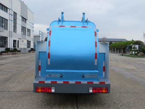 | 车辆主要装有侧装垃圾桶升降装载装置、密封式垃圾箱体、推卸机构、后卸料门专用装置,主要用于收集和转运餐厨垃圾.随底盘选装镜子不同位置安装.选装不同的后部灯具.选装车辆外部标识牌外观及安装位置.选装轻量化上装,对应外形尺寸(长)5960mm,外形尺寸(宽)2150mm,外形尺寸(高)2695mm,后悬1545mm,离去角16?整备质量5470kg,额定载质量2615kg.选装不同规格的侧面防护装置.选装急停开关位置.选装带卸料装置后门,对应整备质量6010kg,额定载质量2075kg.选装称重系统.选装不带导流挡板.选装新式导流挡板.选装单开启式入料口.选装箭头式作业指示灯.电池种类/生产企业:磷酸铁锂蓄电池/宁德时代新能源科技股份有限公司.驱动电机类型/生产企业/型号:永磁同步电机/南京越博动力系统股份有限公司/TZ327XS-YBM308;驱动电机功率(额定功率/峰值功率)KW:60/120.电机控制器型号/电机控制器生产企业:KTZ54X36S-YBC308/南京越博动力系统股份有限公司.技术阶段为"发展期".ABS生产厂家/型号:1.广州瑞立科密汽车电子股份有限公司/CM4XL-4S/4M,2.浙江万安科技股份有限公司/VIE ABS-II.车辆侧面防护装置的材料材质为铝合金,连接方式为螺栓连接.后下部防护装置采用后门专用装置代替,最大离地高度为455mm. |