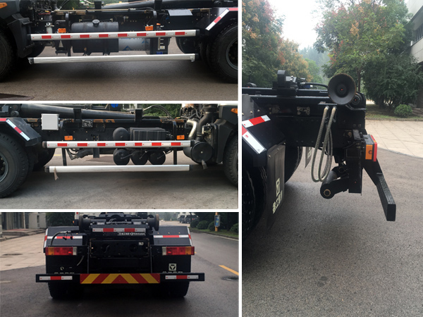| 选用轴距4350+1300mm,4750+1300mm,选装不带后支撑滚轮,随底盘选装同系列驾驶室.侧防护装置材料为铝合金,后防护装置材料为Q235,后防护断面尺寸:120?0(mm),离地高500(mm),连接方式均为螺栓连接.ABS型号为3631010-C2000,生产厂家为东科克诺尔商用车制动系统(十堰)有限公司.该车安装具有卫星定位功能的行驶记录仪.专用装置:拉臂机构,主要用于城镇环卫散装生活垃圾的收集与运输.发动机YC6A240-50,ISD210 50,ISD245 50,YC6A270-50的油耗值分别为35.3,35.6,35.9,36.3(L/100km). |