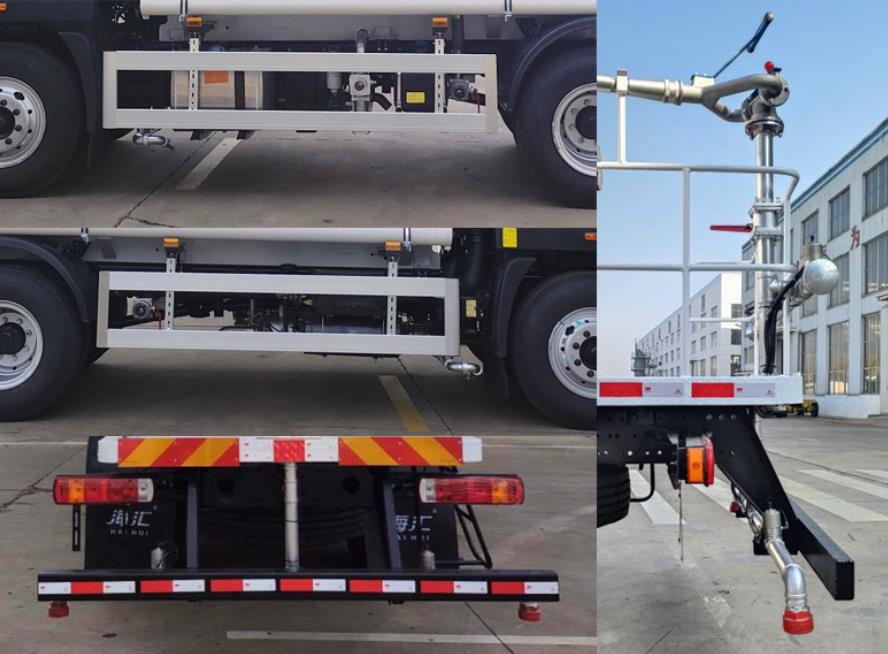 | 该车主要用于喷洒路面,起除尘和降温作用,专用装置为罐体及水泵.罐体总容量:11.61立方米,罐体有效容积:11.06立方米,罐体外形尺寸(长轴锥讨嶙长度)(mm):2320?450?500,介质为水,密度:1000千克/立方米.选装无前置电动水炮样式,安装前置电动水炮时,整车长度为8300mm,前伸为520mm,接近角为12?不安装前置电动水炮时,整车长度为7780mm,无前伸,接近角为18?选装无自吸管放置装置样式,随底盘选装驾驶室前围样式,随底盘选装LOGO标识样式,选装无箭头作业灯样式,选装后部无侧喷装置样式,选装前部鸭嘴喷洒装置样式,选装前部对冲装置,随底盘选装单排驾驶室样式,选装后部喷雾装置样式,选装后部水枪装置样式.选装工作平台样式.选装尾部箭头灯样式;选装后洒装置安装样式;仅选用底盘3950mm轴距,侧防护装置材料采用铝合金,连接方式为螺栓连接,后下部防护装置材料采用Q235B,连接方式为螺栓连接,后防护截面尺寸为125mm?0mm,离地高度为465mm.ABS系统型号/生产企业对应关系:ABS-E/威伯科汽车控制系统(中国)有限公司,CM4XL-4S/4M/广州瑞立科密汽车电子股份有限公司;3550D-1010/东科克诺尔商用车制动系统(十堰)有限公司.车辆后部的箭头作业灯仅在车辆作业时开启,车辆行驶过程中不可开启. |