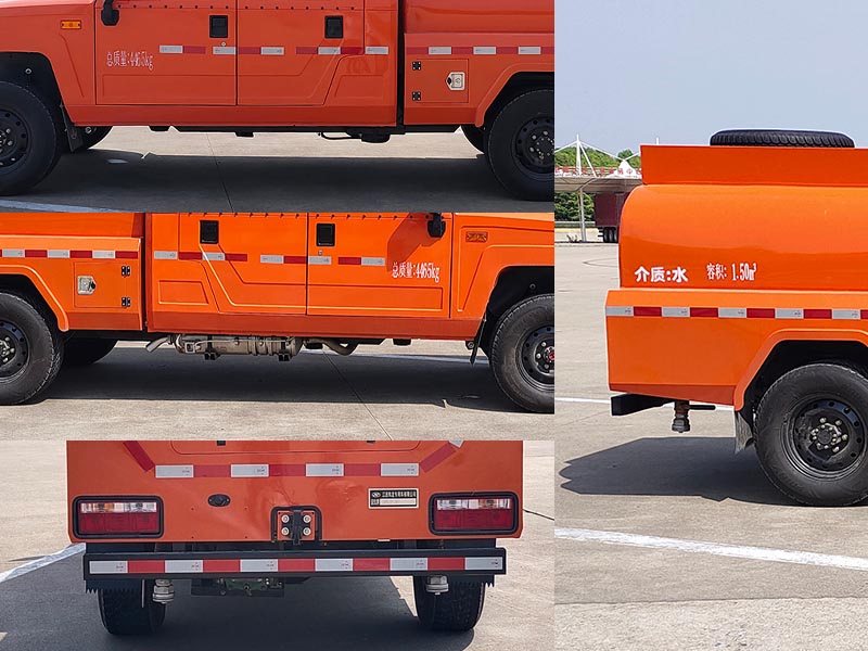 | 主要专用装置为罐体和洒水系统,用于森林路面洒水作业.罐体总容量:1.50立方米,罐体有效容积:1.43立方米,罐体尺寸(长壮ぶ嶙短轴)(mm):1380?520?50.侧面防护及后下部防护装置材料材质:Q235,侧面防护装置为整体式结构,后下部防护装置连接方式:焊接连接,后下部防护装置断面尺寸(宽赘?:50?00(mm),离地高度:485mm;选装不带顶部备胎时整车高度为1950mm,可选装不带车辆前部绞盘和后部拖车钩,整车长/前悬/后悬(mm)的对应关系为:5950/900/1355,5780/900/1185,5800/750/1355,5630/750/1185.ABS型号:DJABS-Y-03,生产厂家:鼎佳(天津)汽车电子有限公司. |