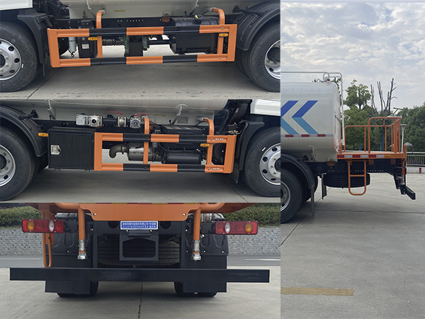 1.选用3950mm轴距;2.罐体外形尺寸(长轴锥讨嶙长):2300?450?200(mm),罐体总容量10.2立方米,罐体有效容积9.75立方米,装载介质:水,密度1000千克/立方米;3.侧防护装置材料为Q235,与车辆采用焊接加螺栓连接;后防护装置材料为Q235,与车辆采用焊接加螺栓连接,截面尺寸为:120?0(mm),离地高度为470(mm);4.安装ABS,ABS控制器型号/生产企业:3631010-C2000/东科克诺尔商用车制动系统(十堰)有限公司,ABS 8/东科克诺尔商用车制动系统(十堰)有限公司,4460046450/采埃孚商用车系统(青岛)有限公司,J ABS/焦作博瑞克控制技术有限公司;5.选装后部高炮样式、作业指示灯、卷盘、前置鸭嘴、后部喷洒、后部对冲、罐体两侧圆形管筒;该系列选装对于整车尺寸,重量变化可忽略不计;选装的作业指示灯仅在车辆作业时点亮.6.随底盘选装驾驶室外观;选装驾驶室侧窗装饰板、前雾灯、驾驶室顶部装饰灯,选装上车踏板型式,选装无车门裙板,选装带防滑材料的脚踏板;7.该车装配有清洗装置、罐体等作业装置,主要用于城镇道路洒水作业. |