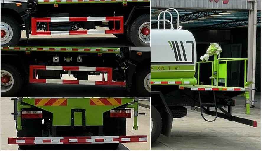 该车主要用于园林绿化,专用装置为喷洒总成,罐体。选装后处理系统,后部平台。罐体总容积:10立方米,有效容积9.6立方米。运输介质:水,密度:1000千克/立方米,罐体外形尺寸(长壮ぶ嶙短轴)(mm):4200?350?450;侧后部防护材质均为Q235,侧防护螺栓连接,后防护焊接连接,后防护下边缘的最大离地高度为500mm,断面尺寸为50mm?20mm;ABS系统生产厂家,型号 :焦作博瑞克控制技术有限公司,J ABS;襄阳东风隆诚机械有限责任公司,ABS/ASR-24V-4S/4M;轴距仅采用3950mm。 |