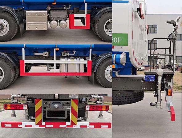ABS系统控制器生产企业/型号为威伯科(上海)管理有限公司/4460046300;选装EBS,EBS系统控制器生产企业/型号为威伯科(上海)管理有限公司/EBS3;罐体总容量18.7立方米,罐体有效容积17.81立方米,罐体总长7630mm,长轴2280mm,短轴1480mm;侧后防护装置材质为Q235A,侧防护与整车副梁用螺栓连接.后防护连接方式为螺栓连接,截面尺寸为120mm?0mm,离地高度为470mm;该车主要专用装置为水罐,对冲喷头等专用装置,主要用于城市、道路、拆迁、建设、堆场粉尘等喷洒作业.仅选用钢板弹簧悬架,仅选用轴距(mm):1800+3800+1350.仅选用前轮距(mm):2035/2035;后轮距(mm):1850/1850,1870/1870.仅选用发动机WP9H350E62、MC07H.33-60、MC11.44-60、WP8.350E61、MC07.31-60、MC07.33-60、MC07H.35-60、WP10H400E62、MC07.34-60、MC11.46-61 .随底盘选装驾驶室及前脸等,随底盘选装限速装置,最高车速(km/h)为80或89.随底盘可不选装驾驶室顶部天线
