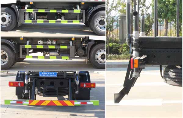 该车主要用于城乡园林绿化,路面喷洒;主要装置为罐体及喷洒装置.罐体总容量:11.55立方米;罐体有效容积:11立方米;罐体外形尺寸(长壮ぶ嶙短轴)(mm):4400?350?600.ABS型号/生产厂家:3631010-C2000/东科克诺尔商用车制动系统(十堰)有限公司,4460046450/采埃孚商用车系统(青岛)有限公司,J ABS/焦作博瑞克控制技术有限公司.侧、后防护材料均为:Q235碳钢,连接方式均为:螺栓连接,后部防护截面尺寸(mm):120?0,后部防护离地高度(mm):470.仅采用底盘3950mm轴距改装.选装前部不带电子雾炮,选装前部电子雾炮样式.当前部不带电子雾炮时,车长7700mm,7800mm,无前伸;当前部选装电子雾炮时,车长8200mm,8300mm,前伸500mm.随底盘选装驾驶室,选装自动球阀安装位置,选装喷洒装置样式,选装后部箭头灯装置,选装弧形喷洒装置,选装后部样式,选装后部大工作平台.后部作业灯仅在作业时开启,车辆行驶过程中不可开启.
