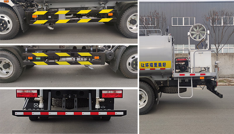 | 车辆主要装置为水罐、水路及作业装置,主要用于街道、广场、小区等喷雾消毒作业及防疫预防.仅选用3800mm轴距.运输介质:消毒液,密度:850千克/立方米.罐体总容量8.79立方米,有效容积8.37立方米,罐体尺寸(长轴锥讨嶙长度)(mm):2100?430?960.无选装时,长度6950mm,接近角/离去角:20?13?后悬为2020mm;选装前自动水炮时,前伸600mm,长度7550mm,接近角/离去角:18?13?后悬为2020mm;选装后部大平台或后雾炮时,长度7400mm,接近角/离去角:20?12?后悬为2470mm;同时选装前自动水炮+后雾炮或后部大平台,前伸600mm,长度8000mm,接近角/离去角:18?12?后悬为2470mm;选装罐体涂装、尾部上下喷雾、前鸭嘴样式、对冲、卷盘、顶部绿化浇灌、后自动水炮装置、自吸进出水口、侧喷管、卷管架、尾部压力放水口、侧防护截面样式、侧置自吸、后洒水路、后雾炮水路、炮托、工具箱,此类选装对尺寸重量的影响忽略不计;侧防护与后防护装置材质均为Q335B,连接方式为螺栓连接;后防护截面尺寸为120?0mm,离地高度430mm;ABS型号:ABS/ASR-24V-4S/4M,ABS系统生产企业:襄阳东风隆诚机械有限责任公司;随底盘选装限速装置时最高车速为89km/h. |