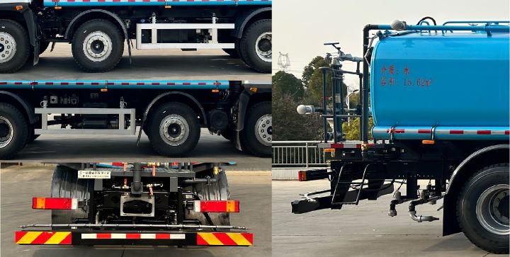 | 该车主要用于城乡园林绿化洒水;主要装置为水罐及洒水泵.罐体有效容积15.62立方米,罐体总容量16.4立方米.罐体外形尺寸(长壮ぶ嶙短轴)(mm):6070?420?500.前伸200mm,侧防护材料为铝合金,连接方式为螺栓连接.后防护材料为Q355B,连接方式为螺栓连接,后部防护装置断面尺寸160?0(mm),后部防护离地高度:460(mm);ABS型号及生产厂家为:3631010-C2000/东科克诺尔商用车制动系统(十堰)有限公司.选装无后部上下喷雾、选装无后部左右花洒、选装无右、后部高位花洒,选装雾炮和后部外观样式 |