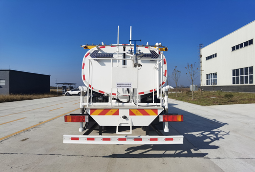 | 该车主要用于城乡园林绿化,路面喷洒,除尘和降温;主要装置为水罐及喷洒装置;侧、后防护均采用Q235材质,均为螺栓连接;后防护截面尺寸(mm)150?0,后防护护离地高(mm)500;仅采用4350+1350mm轴距;罐体总容量15.1立方米,罐体有效容积14.4立方米;罐体外形尺寸(长壮ぶ嶙短轴)(mm):6500?250?400,ABS型号/生产厂家:3631010-C2000/东科克诺尔商用车制动系统(十堰)有限公司,ABS 8/东科克诺尔商用车制动系统(十堰)有限公司,4460046450/威伯科汽车控制系统(中国)有限公司;选装不同结构的前冲样式,电动水炮样式,选装鸭嘴式前冲时整车长/前伸对应关系(mm):9930/130;选装电动水炮时整车长/前伸对应关系(mm):10380/580;选装后部箭头灯,后上部、下部喷雾装置,选装后雾炮,选装尾部平台管道样式;随底盘选装驾驶室,随底盘选装排气管安装位置;选装限速装置,限速89km/h. |