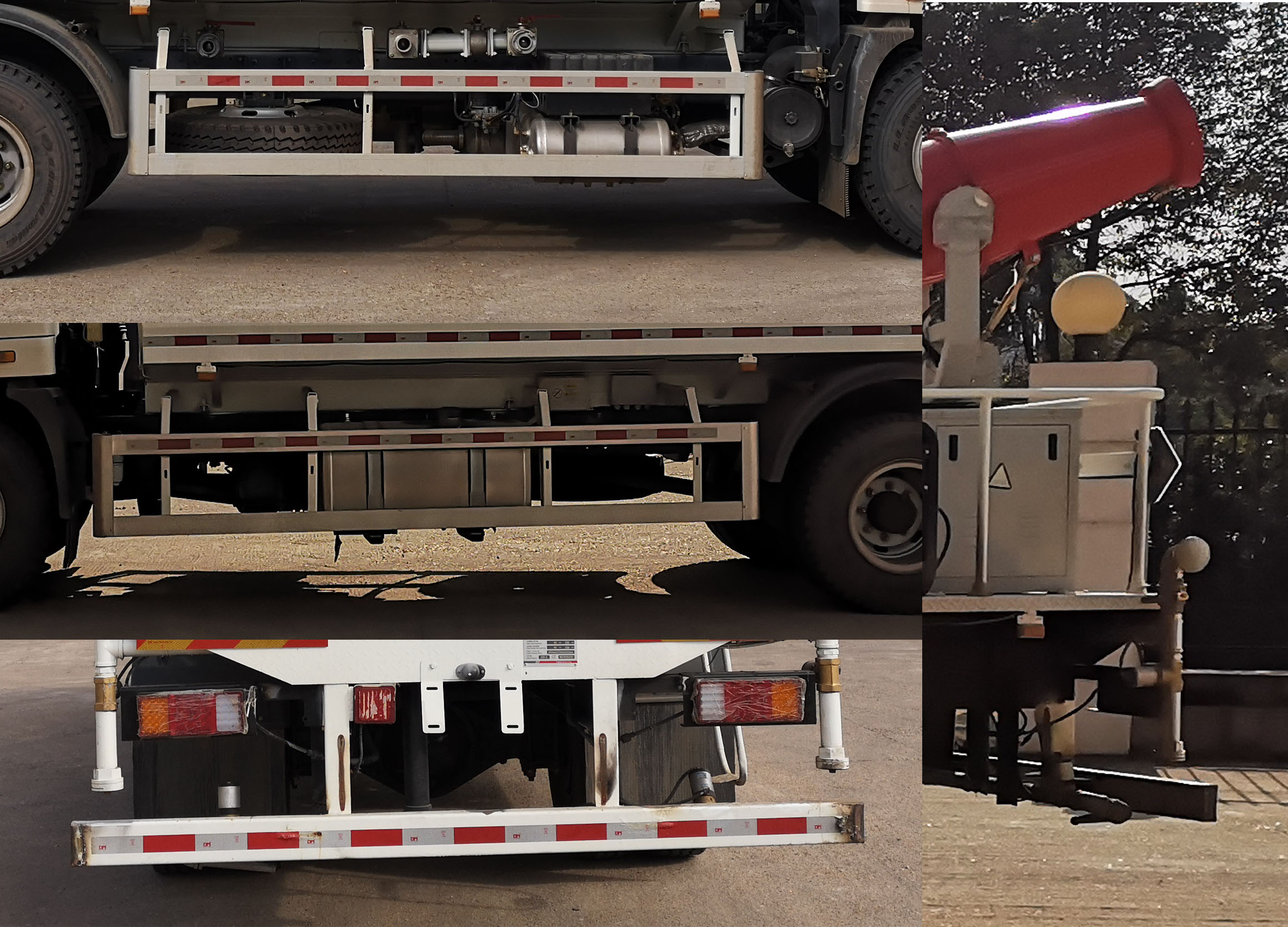 | 该车装有水罐、水路系统、喷洒系统等装置用于洒水,清洗作业.罐体有效容积为11.18立方米,介质:水,罐体尺寸(长度壮ぶ嶙短轴)(mm)4700?300?500。随底盘选装前围饰件;选装不安装水泡、鸭嘴喷洒;安装前水炮时前伸650mm对应整车长9100mm;选装罐箱样式.侧面防护横梁材质为铝合金,纵梁材质为Q235;后下部防护材质为Q235的板材,断面尺寸为120mm?0mm,离地高度为500mm,连接板材质为Q235;侧面防护装置为螺栓连接,后下部防护装置为螺栓+焊接连接。ABS型号:CM4XL-4S(4S/4M),生产厂家:广州科密汽车电子控制技术股份有限公司。 |
