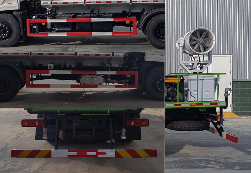 | 该车专用装置为罐体、喷雾机、洒水泵、喷枪、自动配药装置,用于防疫消毒;罐体总容量10.9立方米,罐体有效容积:10.38立方米;罐体外形尺寸(长卓碜高)(mm)为:4300?350?450;侧防护装置材料为Q235,侧防护螺栓和焊接连接;后部防护装置材料为Q235,后部防螺栓连接,后防护截面尺寸120?0mm,下边缘离地高400mm;ABS型号/生产厂家:3631010-C2000/东科克诺尔商用车制动系统(十堰)有限公司,ABS 8/东科克诺尔商用车制动系统(十堰)有限公司;整车长/轴距/后悬对应关系(mm):8700/4700/2570,8500/4500/2570,8150/4700/2020,8150/4500/2220,7850/3950/2470;随底盘选装驾驶室,随底盘选装后处理样式。 |