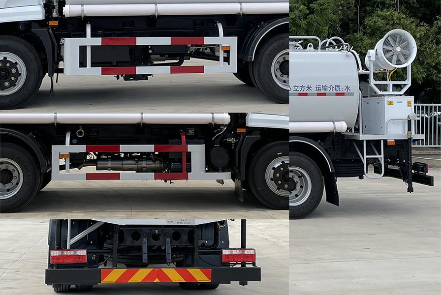 1.该车装备有水泵、喷嘴、管道系统等专用装置,用于喷洒路面等作用;侧、后防材料Q235、螺栓连接,后部防护装置的主要尺寸参数:断面尺寸150?0(mm),最大离地高度:440mm;2.随底盘选装驾驶室外观变化,仅选用3950mm轴距底盘;3.随底盘选装D30TCIF1,D40TCIF1发动机;4.前置电动高射水炮、后部工作指示灯、顶部弧形喷洒、雾炮系统、后部工作平台两侧喷洒及罐体两侧自吸管道为选装件;选装前置高射水炮时前伸为600mm,整车长度/前伸/后悬(mm)对应为:7980/600/1975,8330/600/2325;5.选装前置电动高射水炮支架造型;选装鸭嘴型喷水架;选装中置对冲喷水架;6.运输介质:水;密度:1000千克/立方米;罐体外形尺寸(长轴锥讨嶙长度)(mm):2400?420?200,罐体总容量10.08立方米,罐体有效容积:9.6立方米;7.该车装ABS;ABS型号/生产厂家:ABS/ASR-24V-4S/4M/襄阳东风隆诚机械有限责任公司;8.该车型可选装ETC车载装置. |