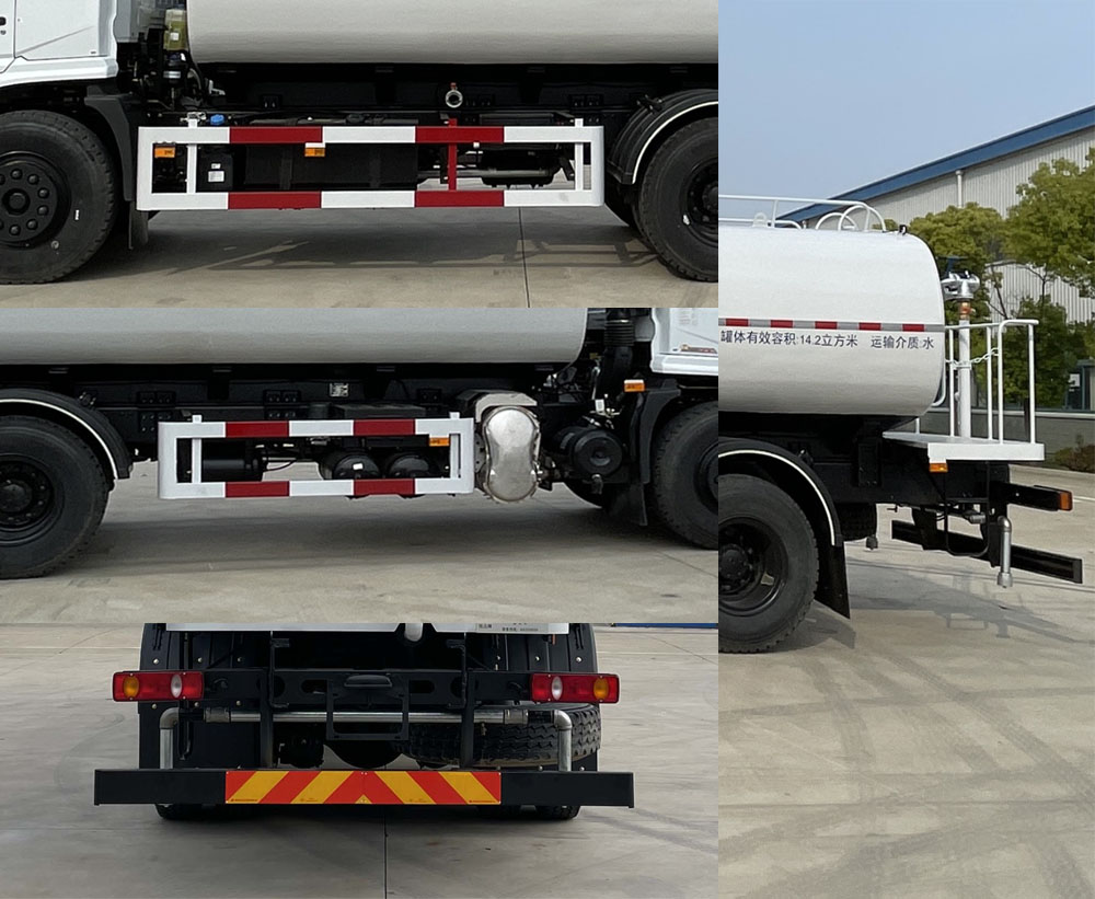| 1.随底盘选装驾驶室外观变化;2.选装前置电动高射水炮,前伸为600mm;选装后部工作箭头指示灯、顶部弧形喷洒;选装后部工作平台两侧喷洒;选装驾驶室前部鸭嘴型喷书架;选装中置对冲喷水架;3.仅选用4350+1350mm轴距底盘;4.运输介质:水;密度:1000千克/立方米;5.罐体外形尺寸(长轴锥讨嶙长度)(mm):2400?420?150,罐体总容量14.9立方米,罐体有效容积:14.2立方米;6.该车装备有水泵、喷嘴、管道系统等专用装置,用于喷洒路面等作用;侧、后防材料Q235、螺栓连接,后部防护装置的主要尺寸参数:断面尺寸150?0(mm),最大离地高度:460mm;7.该车装ABS;ABS型号/生产厂家:3631010-C2000/东科克诺尔商用车制动系统(十堰)有限公司;8.该车型可选装ETC车载装置. |