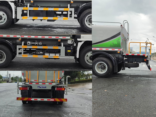1.专用装置:水罐,水泵及喷洒装置,主要用于城乡园林绿化,路面喷洒,除尘和降温.2.罐体外形尺寸(长壮ぶ嶙短轴)(mm):4000?350?560,罐体总容量:10.7立方米,罐体有效容积:10.2立方米.3.侧、后防护装置材料均为Q235,侧防护连接方式为螺栓连接,后防护连接方式为焊接连接,后防护截面尺寸(高卓?为120?0mm,离地高度为450mm.4.ABS型号/生产厂家:ZQFB-V/西安正昌电子股份有限公司.5.仅用非独立式钢板弹簧悬架型式.6.选装不装前置电子水炮样式.7.整车长/轴距/前悬/后悬/前伸对应关系为(mm):8400/4000/1340/2510/550,8400/4000/1450/2400/550,7850/4000/1340/2510/0,7850/4000/1450/2400/0.8.随底盘选装驾驶室,选装不同外形管道,选装风机样式,选装喷洒装置样式,选装后喷雾,选装左侧喷洒,选装右侧喷洒,选装后平台样式,选装右侧管道,选装自动球阀样式,选装LED箭头指示灯,LED箭头指示灯仅在车辆作业时开启,行驶过程中不可开启。 |