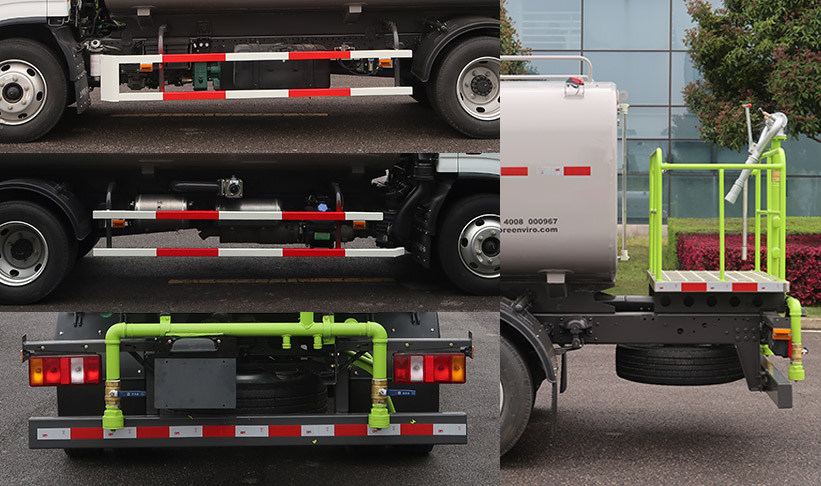 | 该车装有水罐,水路系统,清洗工作装置,作业平台,控制系统,用于路面冲洗,洒水作业;罐体外形尺寸(长轴锥讨嶙长度)(mm):2000?250?000,罐体总容量7.57立方米,罐体有效容积7.2立方米;标配时:整车长7340mm,前伸362mm;选配前自动水炮时:整车长7800mm,前伸822mm;该车还可选装鸭嘴样式,箭头灯,北京箭头灯,上下喷雾,上绿化浇灌,自吸管路,中部水路,后绿化浇灌,后洒气阀,卷盘总成,低压软管,摄像头,压力出水口;随底盘选装驾驶室前围面板和格栅,选装前部灯具,前保险杠外观,选装后视镜,驾驶室前围选装装饰标贴,右侧选装底盘布置;侧防护装置材料为Q235B,连接方式为螺栓连接;后防护装置材料为Q235A,连接方式为螺栓连接,截面尺寸为140?0mm,离地高度为380mm;随底盘装有ABS,ABS 型号:VIE ABS-Ⅱ,生产企业:浙江万安科技股份有限公司.该车型可选装直接供电式ETC车载装置. |