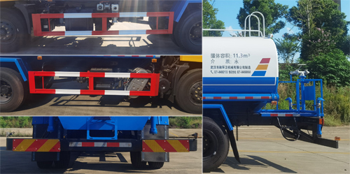 | 装备有水泵、喷嘴,使水流具有一定压力,用于喷洒路面,起除尘和降温作用的罐式专用作业汽车;罐体总容量为:11.3立方米,有效容积为10.8立方米,罐体外形尺寸(长轴锥讨嶙长度)2300?400?000mm;介质为水,密度为:1000千克/立方米,仅选用4500mm轴距;侧防护与后防护所用材料材质均为Q235A,侧防护与副车架螺栓连接,后防护与车辆焊接固定,后防护断面尺寸(mm)为:140?0;离地高度为500mm; 装备ABS,ABS型号/生产厂家:3631010-C2000/东科克诺尔商用车制动系统(十堰)有限公司,ABS还可为ABS 8/东科克诺尔商用车制动系统(十堰)有限公司或 4460046450/采埃孚商用车系统(青岛)有限公司或J ABS/焦作博瑞克控制技术有限公司;选装限速装置,限速89;该车型可选装直接供电式ETC车载装置;随底盘选装驾驶室样式、后视镜,选装后部组合灯具,选装护轮板样式。 |