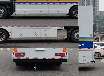 | 1.该车主要专用装置为清水箱、药水箱、药剂箱、防役消毒装置,主要用于街道、广场、小区等喷雾消毒作业及防疫预防.罐体总容量:5.49立方米,罐体有效容积:5.24立方米;罐体外形尺寸:清水箱 (长卓碜高)(mm):486?700?650;药水箱(长卓碜高)(mm):1403?700?650;药剂箱(长卓碜高)(mm):930?50?83。2,裙厢结构侧防护,侧防护离地高410mm;后防护采用Q235A材料,后防护截面尺寸120?0,后防护支架与车架用螺栓连接,离地高度420mm。3,选装一种外观样式。4,随原车安装ABS,ABS系统控制器生产企业/型号为采埃孚商用车系统(青岛)有限公司/4460046300;选装EBS,EBS系统控制器生产企业/型号为采埃孚商用车系统(青岛)有限公司/EBS3。 |