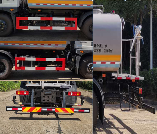 1、该车专用装置:水泵、水罐、喷洒装置等,主要用于道路洒水,冲洗作业.2、罐体有效容积10.03立方米,罐体外形尺寸长轴锥讨嶙长度(mm):2400?420?000,介质为水,介质密度1000千克/立方米,3、该车有3种工作配置,A标准配置:前对冲水枪,后作业平台和后喷洒,整车长度为7470mm.B选装配置:前鸭嘴、前对冲水枪,后作业平台和后喷洒,前伸140mm,整车长度为7610mm.C选装配置:前电控水枪,前对冲水枪,后作业平台和后喷洒,前伸430mm,整车长度为7900mm.选装高位绿化喷洒装置、侧喷绿化喷洒装置、上下喷雾喷洒装置;4、侧防护装置材料为Q235,连接方式为螺栓连接,后防护装置材料为Q235,连接方式为螺栓连接,后防护装置的断面尺寸为120?0?mm,离地高度为450mm.5、ABS型号/厂家:ABS型号:3631010-C2000,J ABS,厂家:东科克诺尔商用车制动系统(十堰)有限公司,焦作博瑞克控制技术有限公司. |