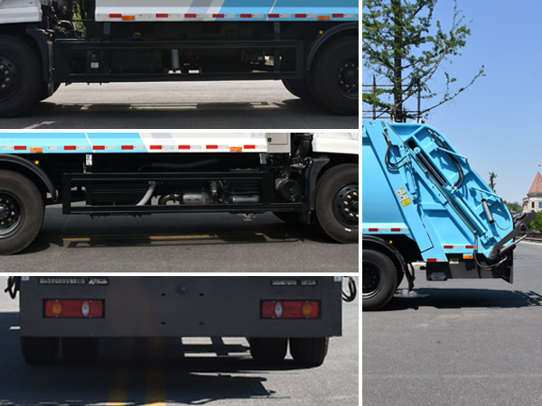 车辆主要专用装置为箱体和压缩机构,用于垃圾装载、压缩和运输.随底盘选装限速装置,限速89km/h.选装外形尺寸和整备质量不同的驾驶室.选装不同结构的车门裙板.选装无车门裙板.选装踏步结构.选装后处理隔热罩和后处理结构.选装驾驶室卧铺侧窗.选装前雾灯.选装前下视镜.选装后视镜.选装驾驶室前面罩.选装前保险杠及前部灯具.选装与车身颜色相同的前保险杠.驾驶室前脸扰流罩为选装件.选装驾驶室顶部装饰灯.选装带防滑材料的脚踏板.选装空滤进气引气管外观.选装后部灯具.选装尿素罐样式.选装部件结构布置.选装裙板结构侧面防护装置.选装不同结构的后翻桶装置.选装三角斗装置.选装落地斗装置.选装摆臂装置.选装气动密封盖.选装尾部防尘盖.选装不同型号的灯具及尾部标志板.选装ETC车载装置.安装具有卫星定位功能的行驶记录仪.仅选用4500mm轴距.配置/外形尺寸长(mm)/前悬(mm)/后伸(mm)对应关系:后翻桶装置/8745/1430/390,后翻桶装置/8715/1400/390,三角斗装置/8710/1430/355,三角斗装置/8680/1400/355,落地斗装置/8560/1430/205,落地斗装置/8530/1400/205,摆臂装置/8460/1430/105,摆臂装置/8430/1400/105.发动机/燃料消耗量(L/100km)对应关系:D4.5NS6B190/24.4,D6.7NS6B230/23.7,DDi50E190-60/23.9,B6.2NS6B210/23.8,B6.2NS6B230/23.8,D4.0NS6B185/24.9,D4.0NS6B195/26.0,D6.7NS6B260/23.8,D4.5NS6B220/26.8,DDi47E210-60/26.57.ABS型号/生产厂家:3631010-C2000/东科克诺尔商用车制动系统(十堰)有限公司,ABS 8/东科克诺尔商用车制动系统(十堰)有限公司,ABS-E 4S/4M/采埃孚商用车系统(青岛)有限公司,J ABS/焦作博瑞克控制技术有限公司.车辆侧面防护装置的材料材质为Q235,连接方式为螺栓连接.后下部防护装置采用专用装置代替,最大离地高度为415mm. |
