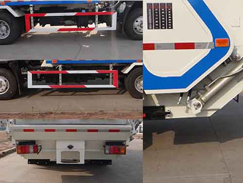 | 该车通过垃圾箱,填装机构等装置,达到垃圾收集装填及推挤卸料的作业功能;该车有3种配置:A(无上料装置,基本型),B(选装翻桶装置),C(选装翻斗装置).配置A时,整车长6591mm,后悬2106mm,整备质量5580kg;配置B时,整车长6854mm,后悬2106mm,后伸263mm,整备质量5750kg;配置C时,整车长6516mm或6875mm,后悬1925mm或2106mm,后伸106mm或284mm,整备质量5897kg;可选装后填装器盖,填装器上部可开启门.侧面防护装置所用材料材质:Q235B,连接方式为螺栓连接;后部防护由工作装置替代,后部工作装置离地高度为412mm.ABS系统型号/生产厂家:APG3550500A/浙江亚太机电股份有限公司或CM4XL-4S/4M/广州瑞立科密汽车电子股份有限公司.4KH1CN6LB发动机油耗申报值为16.1L/100km,4KH1CN6HB发动机油耗申报值为15.73L/100km.随底盘选装驾驶室轮眉,标牌。选装防飞溅系统外观、后部侧罩、后部翻转装置外观.选装双方桶机械手结构,选装后部作业装卸警告灯。选装前门结构型式,选装后视系统。可选装无前门结构。 |