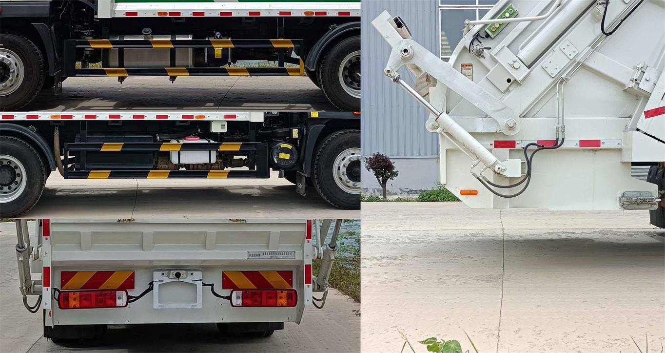 1.该车专用装置为压缩机构、推料装置、翻桶装置等,用于收集和转运生活垃圾;2.整车长度/仅选用底盘轴距/后悬对应关系(mm):8790/4500/2600,9090/4500/2900,9090/4800/2600;后伸量为400mm;整备质量与额定载质量对应关系(kg):10300/7505(3人),10300/7570(2人),10600/7205(3人),10600/7270(2人);3.侧,后防护装置材质均为Q235,侧防护连接方式为螺栓连接;后防护装置由专用装置替代,离地高度为500mm;4.装备具有卫星定位功能的行驶记录仪;5.发动机油耗值对应关系(L/100km):WP4.6NQ220E61/25.89;6.ABS型号为CM4XL-4S/4M,生产厂家为广州瑞立科密汽车电子股份有限公司;7.选装不带液压阀组保护罩,选装不带液压油缸保护罩,选装不带除臭喷淋装置,随底盘选装前部格栅及LOGO风格,该车仅选用底盘10.00R20 18PR轮胎,随底盘安装限速装置,限速90km/h,该车可选装直接供电式ETC车载装置. |