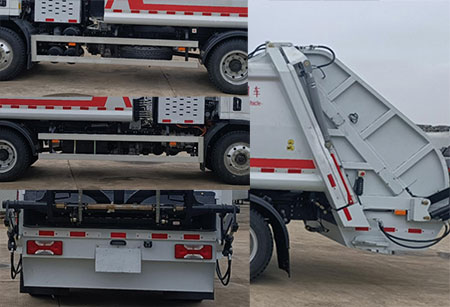 | 专用功能及装置:该车装备有垃圾箱体,液压机构及垃圾装填器,用于垃圾收集、转运等工作.1.选装无上料装置时,其外形尺寸长7820mm,后悬2455mm,整备质量8200kg;2.选装翻桶装置时,其外形尺寸长8275mm,后悬2590mm,后伸320mm,整备质量为8450kg;3.选装翻斗装置时,其外形尺寸长7955mm,后悬2590mm,整备质量为8450kg.随底盘选装驾驶室前围面板和格栅、前部灯具、后视镜、驾驶室前围装饰贴、轮辋,选装举升油缸外观、翻桶油缸外观、污水箱位置、无备胎.侧防护材料为铝合金,连接方式为螺栓连接;后防护为专用装置替代,离地高度470mm.ABS型号:VIE ABS-Ⅱ,生产企业:浙江万安科技股份有限公司.磷酸铁锂电池,型号:L150TX8,生产企业为:宁德时代新能源科技股份有限公司;驱动电机类型为永磁同步电机,型号为TZ342XS-YBM211,额定功率为105kw,峰值功率为180kw,生产企业为南京越博动力系统股份有限公司,控制器型号为KTZ54X56S5MC54SA01,生产企业为上海鑫国动力科技有限公司;整车控制器型号为VCU17-U62,生产企业为上汽大通汽车有限公司/联合汽车电子有限公司或驱动电机型号为TZ370XS-LKM1315,额定功率为100kw,峰值功率为185kw,生产企业为上汽大通汽车有限公司,控制器型号为KTZ54X42SYJ01,生产企业为上汽大通汽车有限公司,整车控制器型号为VC1CC005,生产企业为SAIC MAXUS/BOSCH.该车型可选装ETC车载装置. |