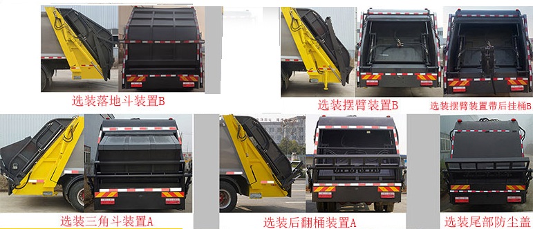 专用装置:液压机构和填装器,主要用于城镇环卫垃圾的收集与运输.ABS系统生产厂家,型号:焦作博瑞克控制技术有限公司,J ABS.防护材料:Q235B碳钢,连接方式:左右侧面防护采用螺栓连接在副梁上,后部防护由专用装置代替,后部专用装置离地高为(mm):470.采用的发动机型号与油耗值对应关系为(L/100km): B6.2NS6B210/26.3,CY4SK761/26.8,D4.0NS6B195/26.6,D4.5NS6B220/26.6,YCS04200-68/26.4.B6.2NS6B230/26.1.安装具有卫星定位功能的行驶记录仪.选装不同工作装置时整车长/轴距/后悬/后伸(对应关系为(mm):8580/4500/2420/400,8510(8470,8310,8220)/4500/2350/400(360,200,110),7960(7920,7760,7670)/3950/2350/400(360,200,110),8680/4700/2320/400,8680/5000/2020/400,8690/5300/2020/110,7600/3600/2340/400.可选装后部翻转样式以及上装外观样式.随底盘选装直接供电方式的ETC装置。选装底盘附件安装位置。随底盘选装驾驶室。 |