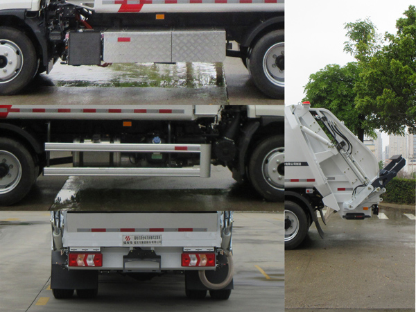 | 配置3种:配置A(选装翻桶装置)、配置B(选装翻斗提桶装置)、配置C(选装平板翻斗装置)。各配置整备质量(kg)/额定载质量(kg)/长(mm)/高(mm)/后悬(mm)/后伸(mm)对应关系如下:配置A:6010/5790/6710/2550/2040/254;配置B::6090/5710/6515/2550/1770/329;配置C:6010/5790/6545/2660/1770/359;左侧防护由专用装置代替,右侧防护装置的材料材质:铝合金,连接方式:螺栓连接,后部防护由专用工作装置代替,离地高度470mm;可选装无后盖板、后视影像;储能装置单体种类/型号/单体生产企业/总成生产企业:磷酸铁锂蓄电池/CBBU0/宁德时代新能源科技股份有限公司/宁德时代新能源科技股份有限公司;发动机型号:D25Pro,最大净功率为113kW,油耗值:17.21L/100km;驱动电机类型/型号/生产企业/额定功率/峰值功率:永磁同步电机/TZ220XY01/无锡明恒混合动力技术有限公司/65kW/125kW;ABS型号/生产企业:CM4XL-4S/4M/广州瑞立科密汽车电子股份有限公司;选装直接供电ETC车载装置;该车允许外接充电;该车装备有垃圾箱体、液压机构及垃圾装填器,用于将垃圾自行压实装入、转运和卸料功能。 |