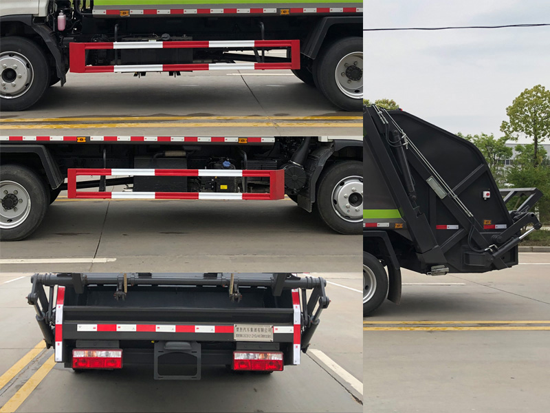 | 该车主要专用装置由箱体、压缩系统组成,用于垃圾的收集与清运.侧防护材料为Q235,螺栓连接;后防护由专用装置代替,下边缘离地高500mm.该车可选装方形或弧形箱体,选装全密封盖装置,选装后部工作装置,选装爬梯.选装后翻转架样式.选装多路阀护罩,选装填充器外罩.选装不同工作装置时外形长/后伸(mm)对应关系:①无上料装置:7070/0,②摆臂装置及全密封斗装置:7270/200, ③半密封斗装置及翻桶装置:7460/390.发动机与油耗值(L/100km)的对应关系为:D30TCIF2/20.1.该车可选装直接供电式ETC车载装置.ABS型号/生产企业:VIE ABS-Ⅱ/浙江万安科技股份有限公司.D30TCIF2发动机最大净功率为115KW.选装尾部导流板结构. |