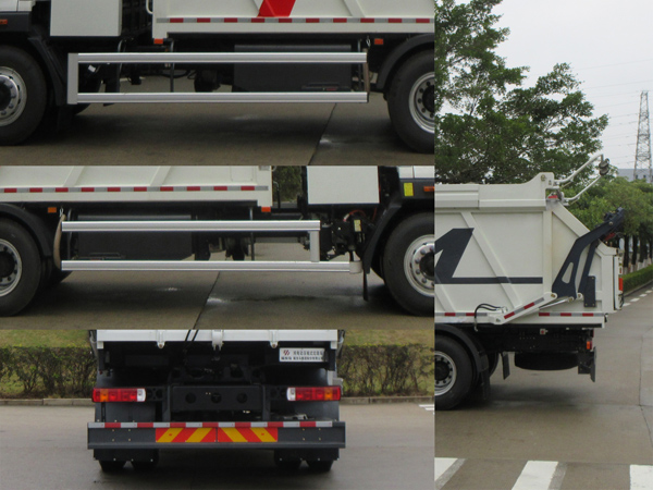 | 1、储能装置单体种类/型号/生产企业:磷酸铁锂蓄电池/CB230/宁德时代新能源科技股份有限公司,储能装置总成型号/生产企业:L228H02/宁德时代新能源科技股份有限公司; 2、驱动电机类型/型号/生产企业/额定功率/峰值功率:永磁同步电机/FTTB080C/北汽福田汽车股份有限公司/80kW/160kW;3、ABS型号/生产企业:ABS-E/威伯科汽车控制系统(中国)有限公司;4、侧防护装置的材料材质:铝合金,后部防护装置的材料材质:Q345B,连接方式均为螺栓连接;后部防护装置的断面尺寸(宽赘?mm:60?40,离地高度为430mm;5、该车型安装具有卫星定位功能的行驶记录仪,可选装直接供电ETC车载装置;6、可随底盘选装前格栅风格;7、该车装备有垃圾箱体,液压机构及垃圾桶提升装置,用于将垃圾自行压实装入,转运和卸料功能,后部装有作业照明灯,仅在停车作业时才能开启,行驶过程中不可开启;8、该车可选装左右侧另一种污水箱,选装另一种压板装置. |