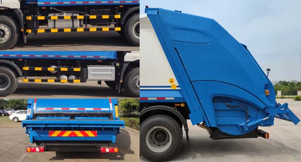 该车装备有垃圾箱体,液压装置及垃圾装填器,用于将垃圾自行压实装入,转运和 卸料功能.该车具有后伸395mm;该车仅选用底盘轴距4375+1400(mm).随底盘选装驾驶室,选装后尾部组合灯具,选装后翻斗结构并选装尾部标志板和后牌照板位置;侧防护栏材质采用Q235,连接方式为焊接加螺栓连接;后部车辆构件代替后防护栏起防护作用,最大离地高度为490mm.安装带卫星定位功能的行驶记录仪.ABS系统生产厂家:西安正昌电子股份有限公司,型号:ZQFB-V.发动机型号与油耗值对应关系为(L/100km):WP8.320E61,WP8.350E61/32.18,WP7.300E61,WP7.270E61/32.37,YCS06270-60/31.22.该车可选装ETC车载装置 |