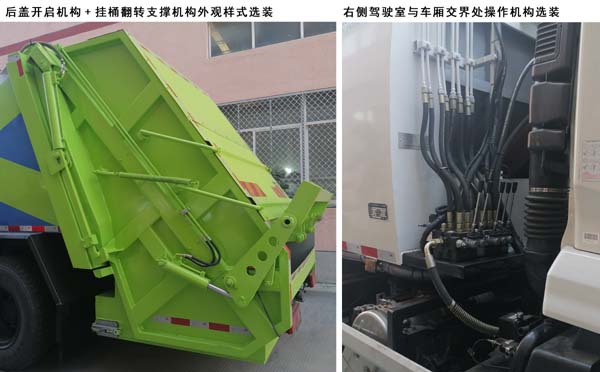后伸1630mm;该车装有垃圾车厢、填塞器、液压机构,用于对垃圾的收集、压缩和运输,采用推铲卸料;随底盘选装驾驶室外观;选装不同外观的尾部填塞器后盖开启机构和挂桶翻转支撑机构,选装右侧驾驶室与车厢交界处操作机构;安装带卫星定位功能的行驶记录仪;仅选用4500mm轴距;ABS型号/生产厂家:3631010-C2000/东科克诺尔商用车制动系统(十堰)有限公司、ABS 8/东科克诺尔商用车制动系统(十堰)有限公司、4460046450/采埃孚商用车系统(青岛)有限公司、J ABS/焦作博瑞克控制技术有限公司;D4.5NS6B190、D6.7NS6B230、DDi50E190-60、B6.2NS6B210、B6.2NS6B230发动机对应的油耗申报值(L/100km)分别为:24.4、23.7、23.9、23.8、23.8;侧防护材质为铝合金,与车辆连接方式为螺栓连接,后防护由专用作业装置替代,离地高度470mm。 |
