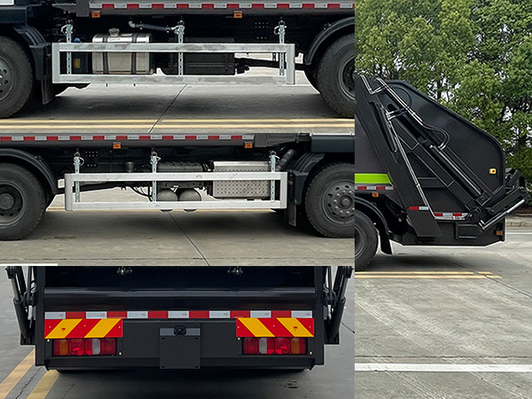 | 1.该车主要专用装置由箱体,压缩系统组成,用于垃圾的收集与清运;2.随底盘选装驾驶室,选装电瓶箱、储气筒、尿素罐的外观型式和布置位置;仅采用底盘钢板弹簧悬架;选装填充器结构,选装后部工作装置;外形长/轴距/后伸对应关系为(mm):①翻桶装置:9480/5000/380,9180/4700/380,8980/4500/380;②半密封斗装置:9380/5000/280,9080/4700/280,8880/4500/280;③摆臂装置,全密封斗装置:9100/5000/0,8800/4700/0,8600/4500/0;3.仅选用轴距(mm):4500,4700,5000;随底盘选装限速装置时最高车速为:89km/h,80km/h;4.侧防护采用材料/铝合金,螺栓连接;选装侧防护材料为Q235,连接方式为焊接加螺栓;后防护由专用装置替代,下边缘离地高:450mm;5.ABS系统控制器生产企业/型号为采埃孚商用车系统(青岛)有限公司/4460046300;6.发动机型号/油耗值(L/100km)对应关系:WP6H270E61/24.12,WP6H245E61/24.12,WP4.6NQ220E61/26.37;7.安装带有卫星定位功能的行驶记录仪,该车型可选装直接供电式ETC车载装置. |