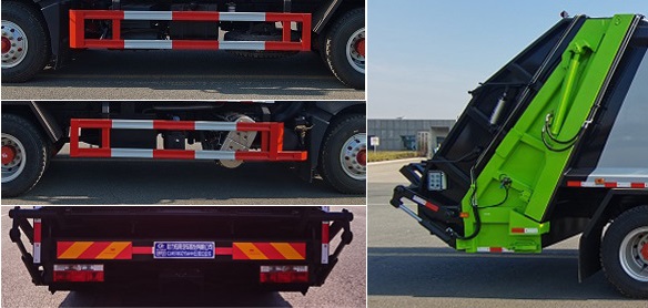 1.专用装置:液压机构和填塞器,主要用于城镇环卫垃圾的收集与运输.2.该车为翻桶装置样式,选装尾部三角斗装置,选装尾部落地斗装置,选装摆臂装置.3.选装不同工作装置时整车长/前悬/轴距/后悬/后伸对应关系为(mm):①翻桶装置:8840(9040,9340,7950,7600)/1260/4500(4700,5000,3950,3600)/2680(2680,2680,2340,2340)/400;②三角斗装置:8600/1260/4500/2680/160;③落地斗装置:8540/1260/4500/2680/100;④摆臂装置:8540/1260/4500/2680/100.4.侧面防护材料:Q235A碳钢.连接方式:左右侧面防护均采用焊接连接,后防护由专用装置替代,离地高度为(mm):460.5.ABS系统生产厂家,型号:焦作博瑞克控制技术有限公司,J ABS;襄阳东风隆诚机械有限责任公司,ABS/ASR-24V-4S/4M.6.发动机及油耗值(L/100Km)为:B6.2NS6B210/26.3,D4.5NS6B220/26.6,D4.0NS6B195/26.6,YCS04200-68/26.4,CY4SK761/26.8,B6.2NS6B230/26.1,YCY30165-60/26.5.7.该车可选装直接供电方式的ETC车载装置.8.选装限速装置时最高车速为:89km/h.9.该车安装带有卫星定位功能的行驶记录仪.随底盘选装驾驶室. |