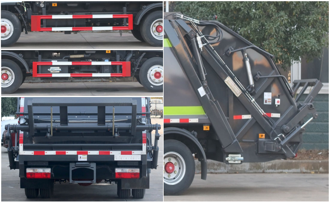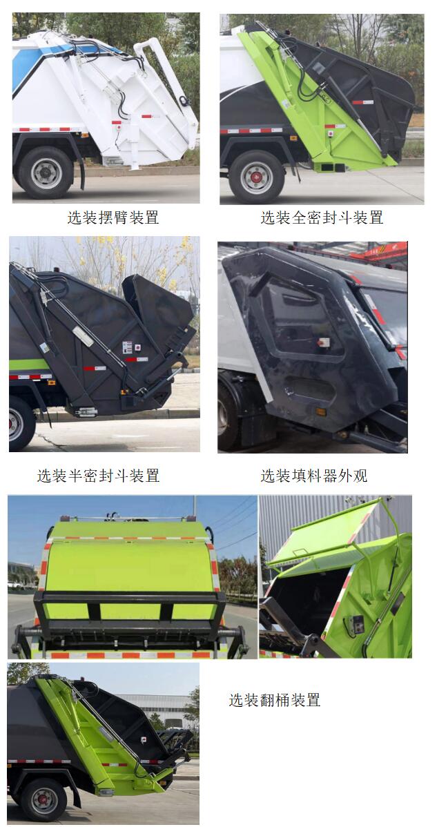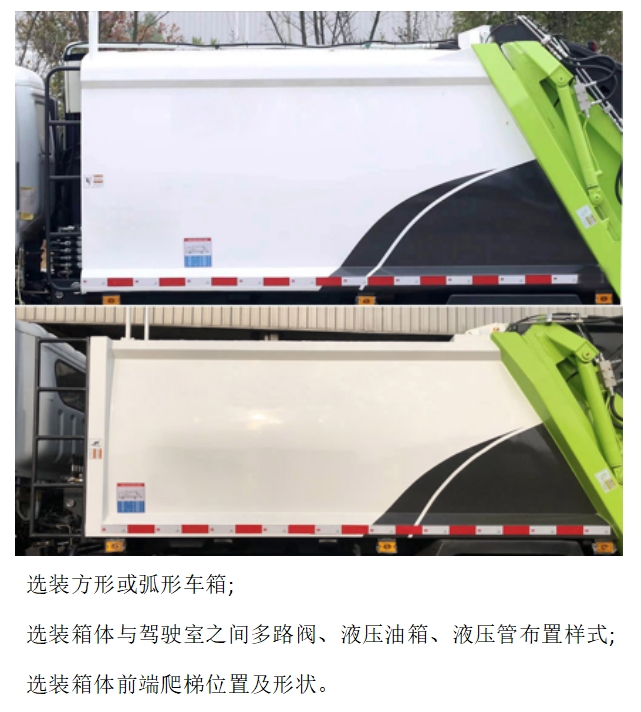 1、该车仅选用轴距3308mm底盘改装;主要专用装置由箱体、压缩系统等组成,用于垃圾的收集与清运。2、侧防护材料为Q235,与车架螺栓连接;后防护由专用装置代替,下边缘离地高480mm。3、选装方形或弧形车箱;选装箱体与驾驶室之间多路阀、液压油箱、液压管布置样式;选装箱体前端爬梯位置及外观。4、选装不同的工作装置时外形长(mm)/后伸(mm)对应关系为:①选装摆臂装置或全密封斗装置时:6650/150;②选装半密封斗装置或翻桶装置时:6900/400。选装填料器外观。5、发动机型号/净功率(kW)/油耗值(L/100km)的对应关系为:CA4DB1-11E6/79/16.3,CY4BK161/102/16.2,CY4BK461/92/16.2,D20TCIF1/88/16.3,YCY24140-60/99/16.3,ZD30D16-6N/115/16.3,H20-120E60/87/14.9,Q28-130E60/93/15.9,CA4DB1-13E6/93/16.2,Q23-115E60/82/14.5,M9T-600/100/16.2.6、ABS型号/生产企业:ABS/ASR-12V-4S/4M/襄阳东风隆诚机械有限责任公司。7、该车可选装直接供电式ETC车载装置。 |