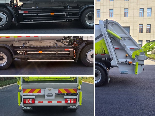 | ABS系统生产厂家/型号:广州瑞立科密汽车电子股份有限公司/CM4XL-4S/4M;选装翻桶装置时,长6880mm,后悬1980mm,后伸355mm,整备质量7010kg;选装铲斗装置时,长6665mm,后悬1955mm,后伸165mm,整备质量7270kg;侧后防护情况:侧防护材料为Q235B,连接方式为螺栓连接,后防护为专用装置替代,离地高度为395mm;专用功能及装置:该车装备有垃圾箱体,液压机构及垃圾装填器,用于垃圾收集、转运等工作.储能装置种类:磷酸铁锂电池,储能装置单体和总成生产企业:宁德时代新能源科技股份有限公司;驱动电机类型:永磁同步电机.选装车载ETC装置,安装具有卫星定位功能的行驶记录.随底盘选装前格栅样式及车标位置. |