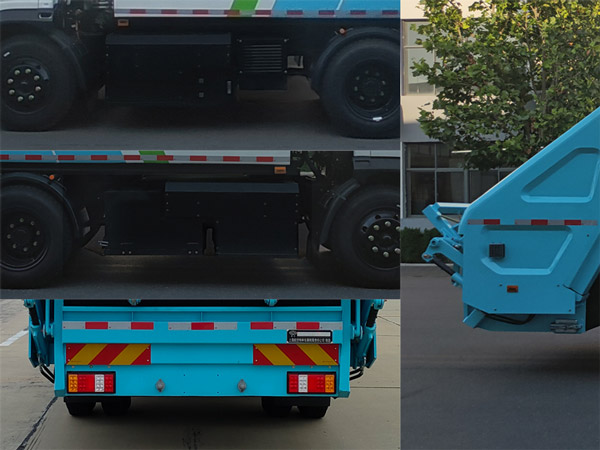 | 1.该车选用3300mm底盘轴距;2.该车通过垃圾箱,填装机构等装置,达到垃圾收集装填及推挤卸料的作业功能; 3. 侧防护装置由工作装置替代;后防护装置由工作装置替代,工作装置的离地高度为480mm;4.储能装置种类/单体生产企业/总成生产企业:磷酸铁锂蓄电池/宁德时代新能源科技股份有限公司/宁德时代新能源科技股份有限公司; 5.驱动电机类型:永磁同步电机;驱动电机生产企业/型号/额定功率(kW)/峰值功率(kW):浙江盘毂动力科技有限公司/TZ315XS230/125/230; 6.电机控制器型号/生产企业:KTZ54X57SPC800A/浙江盘毂动力科技有限公司;7.该车可选装ETC车载装置;8.ABS型号:XH-KQ4S4M-E01;ABS生产企业:广州西合汽车电子装备有限公司;9.选装后部无上料机构;后伸(mm)/车长(mm)对应关系:390/6995,0/6605;10.安装具有卫星定位功能的行驶记录仪;选装一级踏步 |