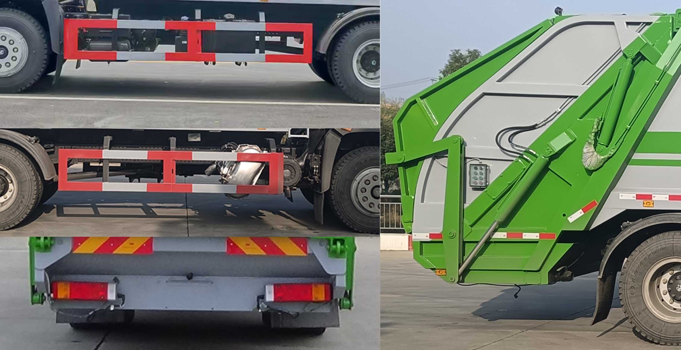 该车主要专用装置由箱体、压缩系统组成,用于垃圾的收集与清运.侧防护材料为Q235,连接方式为螺栓连接加焊接连接;后防护由专用装置代替,下边缘离地高500mm.仅采用轴距4500mm.ABS型号及生产厂家为:3631010-C2000/东科克诺尔商用车制动系统(十堰)有限公司,J ABS/焦作博瑞克控制技术有限公司;该车型可选装直接供电的ETC车载装置.发动机对应油耗值(L/100km):YCS06200-60/24.3,B6.2NS6B230/24.2,YCS04200-68/24.3,B6.2NS6B210/24.2,YCS06245-60A/24.3,YCS06220-60/24.3.选装后部工作装置时,整车外形长/前悬/轴距/后悬/后伸(mm)对应关系为:8530/1250/4500/2670/110,8530/1410/4500/2510/110,8530/1450/4500/2470/110.该车安装具有卫星定位功能的行驶记录仪.随底盘选装驾驶室;选装底盘布局样式;选装尾部翻桶装置,选装尾部三角斗装置,选装尾部落地斗装置,选装尾部摆臂装置,选装厢体结构样式;选装箱体外形;选装密封盖样式;选装无上料装置. |