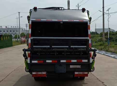 选装后部上料结构;仅采用3365mm轴距;外形长/后伸对应关系为(mm):6520/230,6700/410;侧防护材料Q235,螺栓连接;后防护由专用作业装置代替,下边缘离地高度440mm;发动机D25TCIF1油耗值(L/100km)为15.6;ABS系统型号/厂家为VIE ABS-Ⅱ/浙江万安科技股份有限公司;该车主要专用装置为垃圾箱及压缩机构,用于城市环卫垃圾压缩及运输.该车型可选装ETC车载装置。选装车辆后尾部带三角斗,带后翻转结构样式。随底盘选装驾驶室样式。选装弧形厢体外观结构样式,选装带摆臂、三角斗、落地斗、挂桶外观结构样式。 |